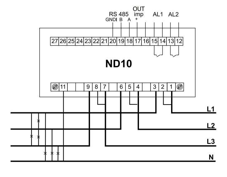 Aparat monitorizare Lumel ND10-23100E, 3×290/500, 5 A, iesiri 2 relee, impuls, RS485 – Aparate monitorizare – ND10 este un aparat de monitorizare pentru retele trifazate