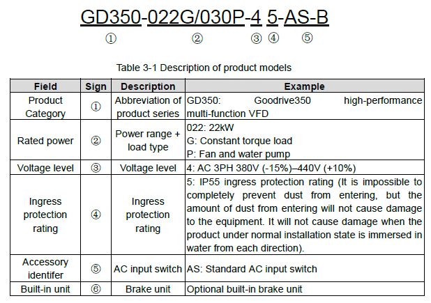 Convertizor de frecventa INVT GD350-011G/015P-45-AS, 11 kW, 25 A, (HD) / 15 kW, 32 A, (ND), 3×400/3×400 V, IP55