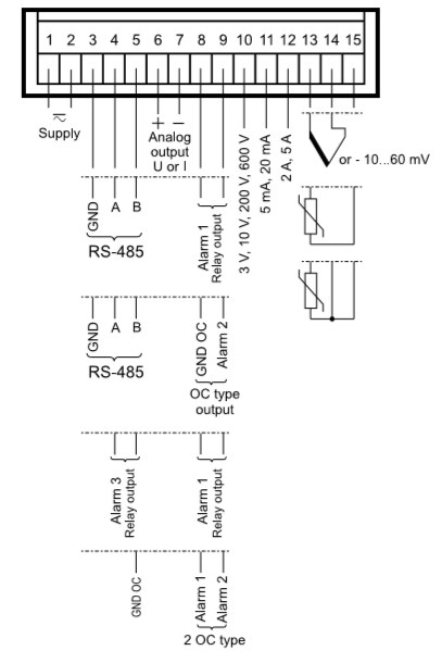 Aparat de masura digital Lumel NA3-FTGU0020008, 3 culori, afisaj verde, 0…600 V; 0…5A, 2 x AI, RTD, TC, R, RTC, 20…40 V c.a., c.c.