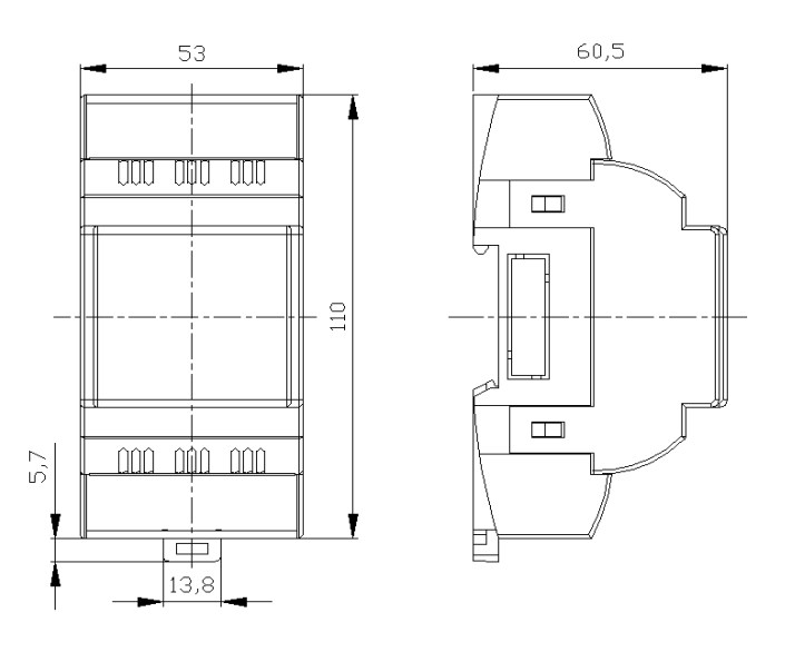 - design modular de tip S pentru sina de 35 mm (latime de 3 module)